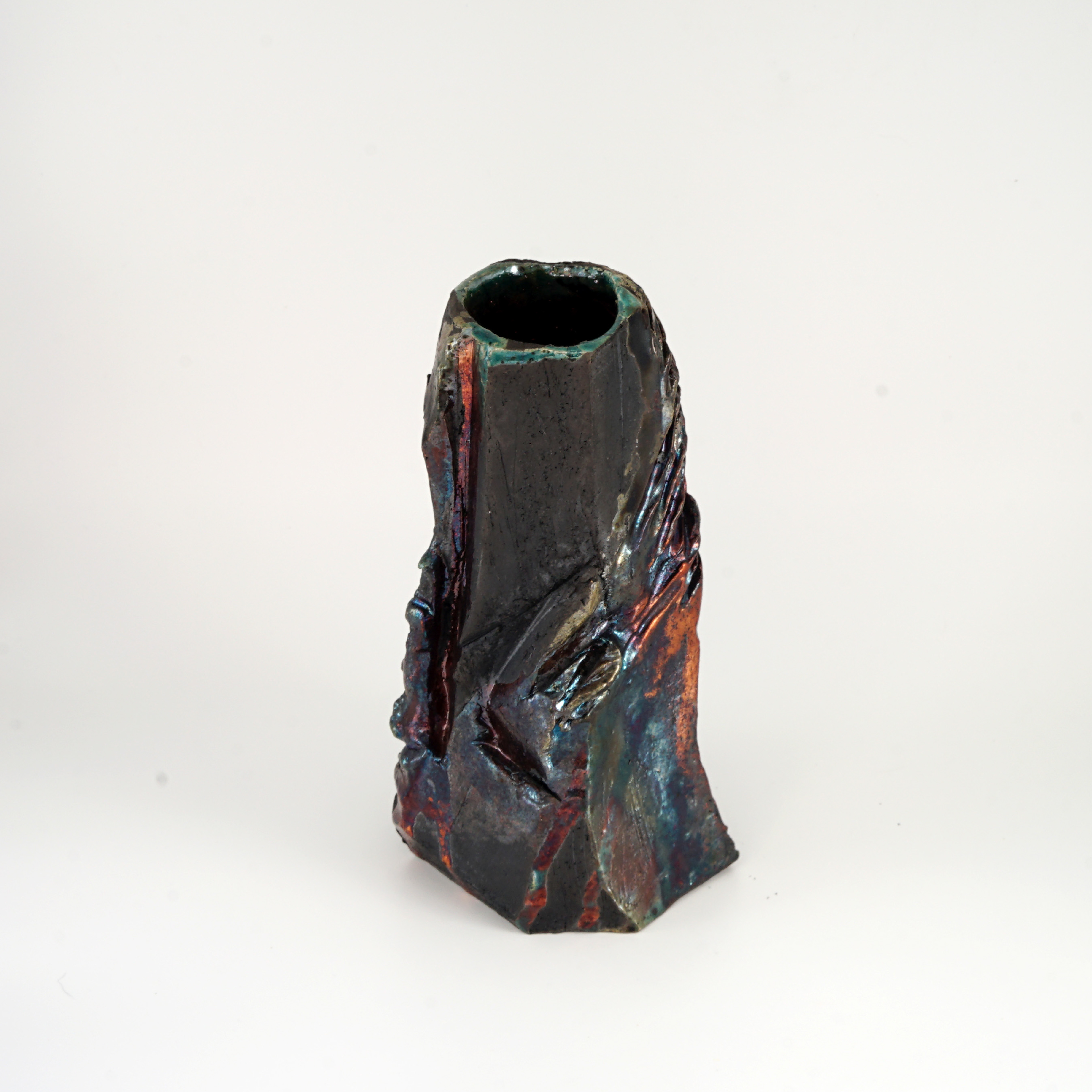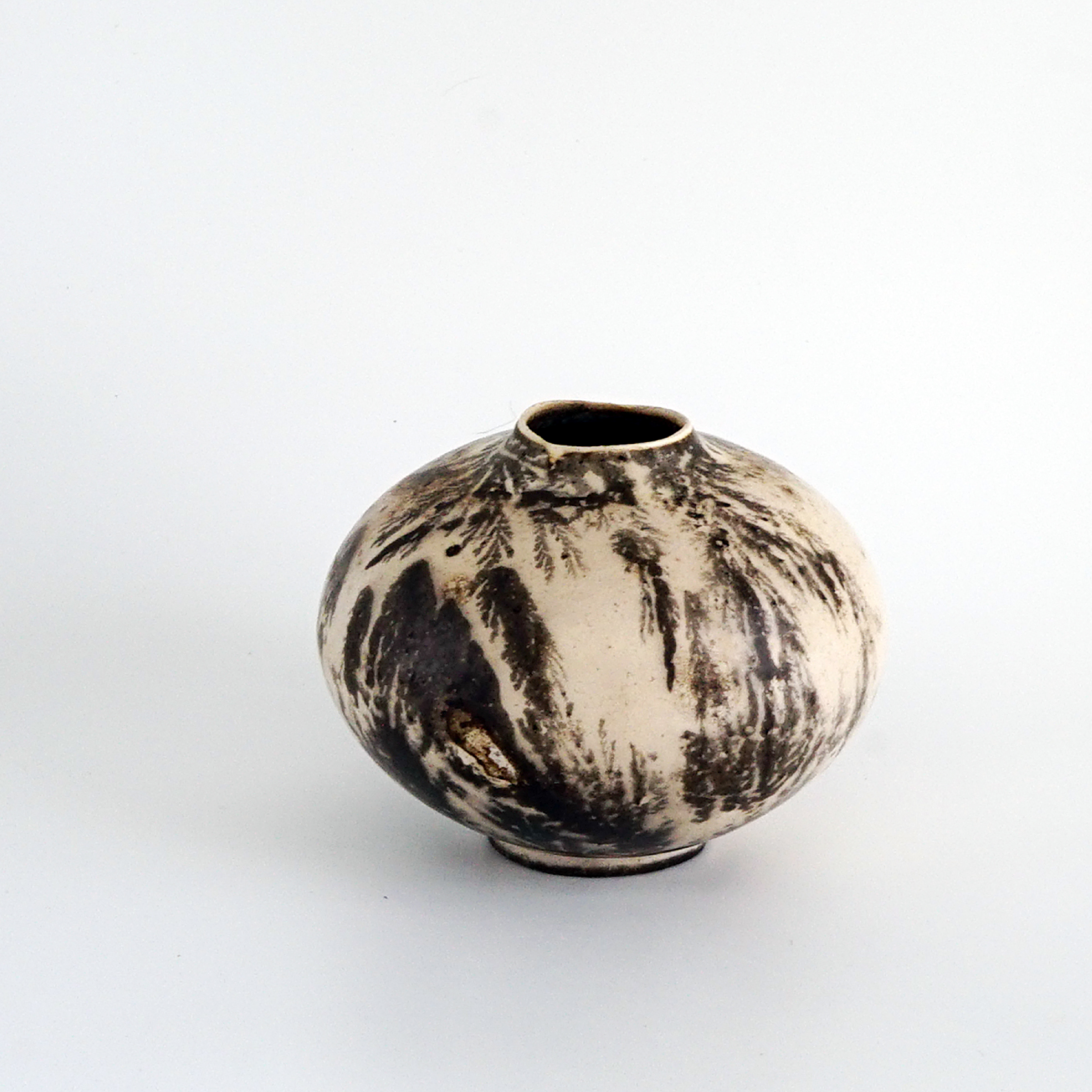 embrasser la surface brute de l'argile : laisser le pot (partiellement) sans émaux, et utiliser soit la fumée pour le teinter, soit la technique Obvara avec de la levure, de la farine et du sucre pour créer des motifs imprévisibles.